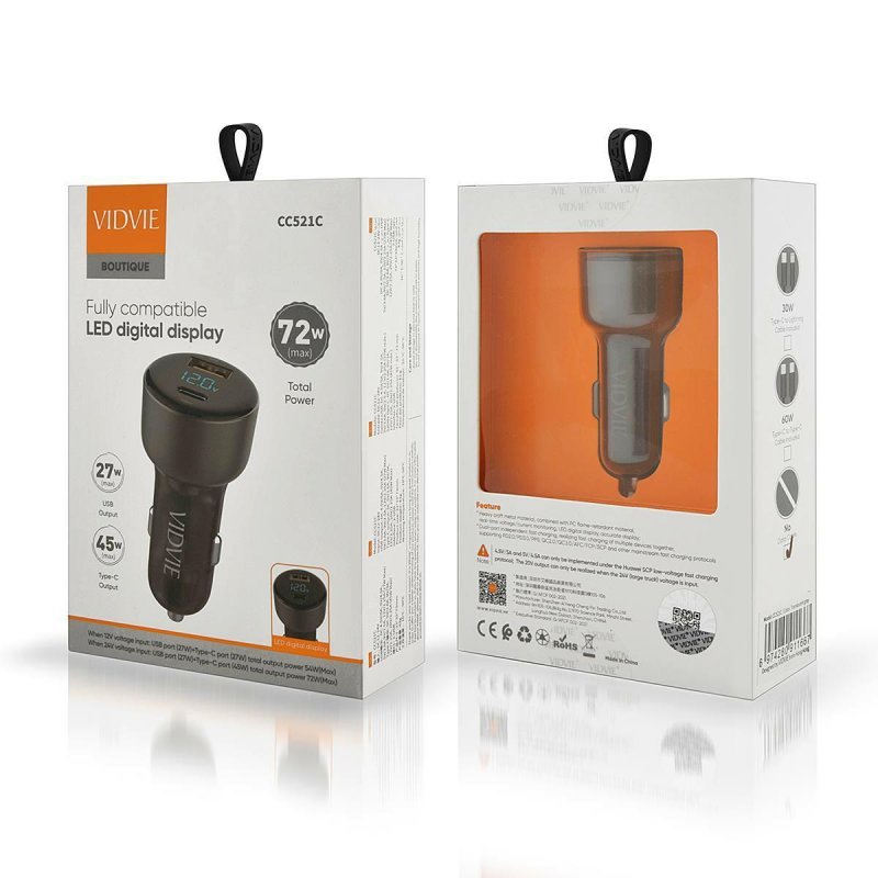 CAR CHARGER VIDVIE CC521C 72W, 1xUSB + TYPE C