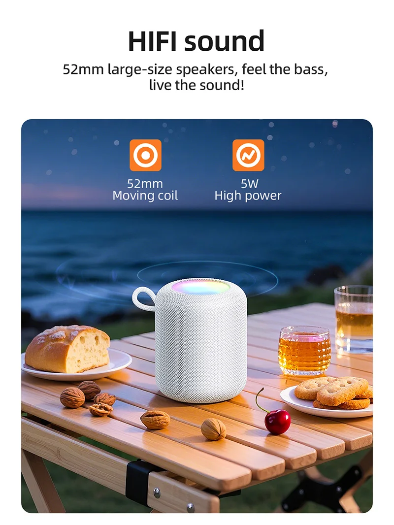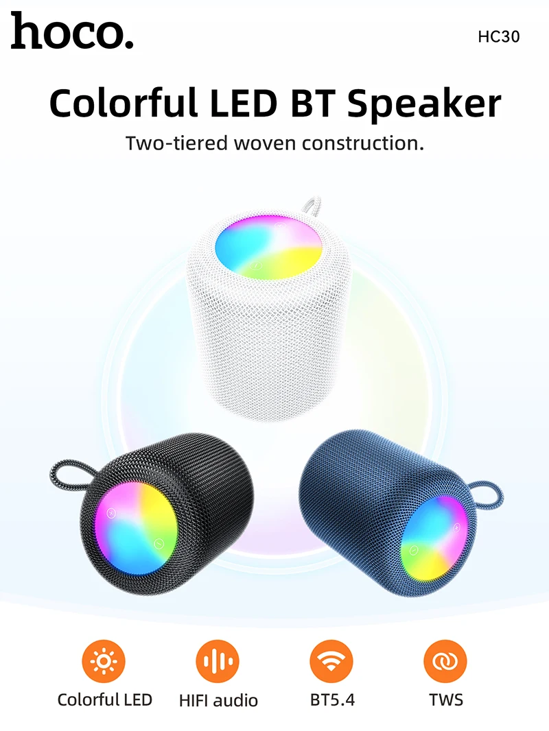 Experience powerful sound and colorful visuals with the Hoco HC30 Wireless Bluetooth Speaker. Designed for music lovers who want portability, versatility, and style, this compact speaker delivers a punchy 5W audio output with deep bass, vibrant RGB lighting, and multiple playback modes. Whether you’re relaxing at home, hosting a party, or enjoying music outdoors, the HC30 speaker keeps you connected with Bluetooth 5.4, FM radio, TF card, USB drive, and AUX-in support.