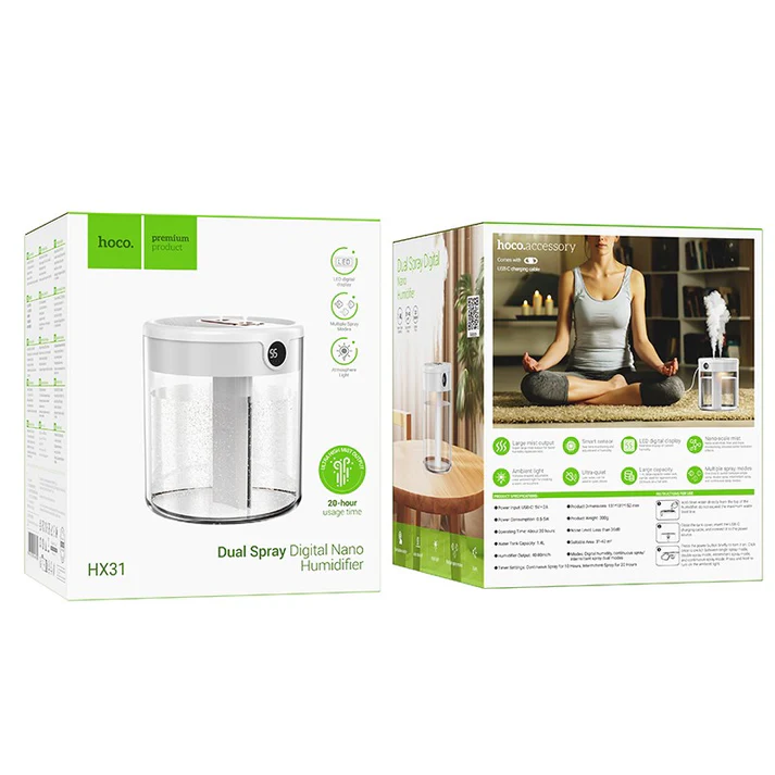 The Hoco HX31 Desktop Humidifier in white is your perfect companion for a fresher, healthier environment. With a modern design and quiet operation, this desktop humidifier delivers cool mist to improve air quality, reduce dryness, and add comfort to your home, office, or bedroom. USB-powered and compact, it’s also ideal for travel or bedside use.